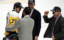 Tocchet was named as the associate coach of the Tampa Bay Lightning on July 9, 2008.[2] On November 16, he was named the interim head coach of the Lightning, replacing Barry Melrose who was fired two days earlier after compiling a 5–7–4 record. Tocchet lost his first game to the Carolina Hurricanes in a shootout.[3] Tocchet's first win came two games later on November 21 against the Nashville Predators. However, he would go on to lose his next nine games, and twelve of the next thirteen.[4] On May 11, 2009 Tocchet had the interim tag removed and was signed to a two-year deal by the Lightning.[5] On April 12, 2010 he was relieved of his coaching duties by the new ownership of the Tampa Bay Lightning. On June 25, 2014, he was hired by the Pittsburgh Penguins to be an assistant coach. On June 12, 2016, Tocchet won the Stanley Cup with the Penguins. He won his second Stanley Cup as coach on June 11, 2017, when the Penguins defeated the Nashville Predators in six games.