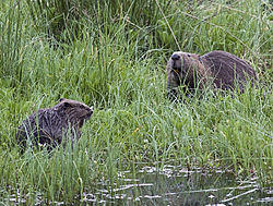 The first sustained and significant population Eurasian beaver (Castor fiber) living wild in Scotland in over 400 years became established on the river Tay catchment in Scotland as early as 2001, and has spread widely in the catchment, numbering from 20 to 100 individuals in 2011.[10] These beavers were likely to be either escapees from any of several nearby sites with captive beavers, or were illegally released, and were originally targeted for removal by Scottish Natural Heritage in late 2010.[11] Proponents of the beavers argued that no reason exists to believe that they are of "wrong" genetic stock.[10] In early December 2010, the first of the wild Tayside beavers was trapped by Scottish Natural Heritage on the River Ericht in Blairgowrie, Perthshire and was held in captivity in Edinburgh Zoo, dying within a few months.[12] In March 2012 the Scottish Government reversed the decision to remove beavers from the Tay, pending the outcome of studies into the suitability of re-introduction.[13]