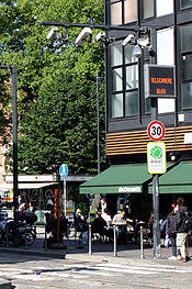 The Stockholm congestion tax covering Stockholm City Centre was trialed for seven-month trial during 2006 and has been operational on a permanent basis since 1 August 2007;[68][69] all the entrances and exits of this area have unmanned control points operating with automatic number plate recognition and most vehicles pay a fixed fee during peak hours.[70] A similar congestion tax was introduced in Gothenburg in 2013, the Gothenburg congestion tax. In opposite to Stockholm, this tax covers also usage of bypass road past the city. The congestion tax is called tax, not toll or fee, since a principle has been established that road tolls can only exist to pay for the construction of the specific tolled road, during a limited period. The congestion tax charges every road that crosses certain lines, regardless of its age. Three bridges in Sweden have road tolls (as of 2015).