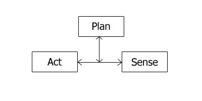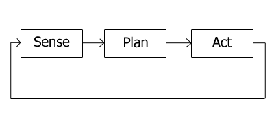 - The robot senses the world, plans the next action, acts; at each step the robot explicitly plans the next move.