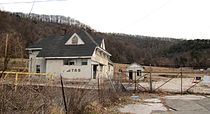 In the early 20th century, Rockwood's economy further diversified. Former Roane Iron employee James Tarwater founded Rockwood Mills, which manufactured hosiery, in 1905. Another former Roane Iron employee, Sewell Howard, established Rockwood Stove Works in 1916. After Roane Iron's collapse in 1929, Rockwood struggled with unemployment. At the outbreak of World War II, however, the Tennessee Products Corporation reopened the iron works to produce ferromanganese for the wartime effort.[1] Like other Roane County communities, Rockwood's economy was boosted by the government's construction of nearby Oak Ridge during World War II.
