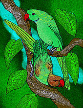 Hume has suggested that the Mascarene parrots have a common origin in the radiation of the tribe Psittaculini, basing this theory on morphological features and the fact that Psittacula parrots have managed to colonise many isolated islands in the Indian Ocean.[6] The Psittaculini may have invaded the area several times, as many of the species were so specialised that they may have evolved significantly on hotspot islands before the Mascarenes emerged from the sea.[2]