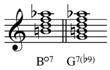 An example of an assumed root is the diminished seventh chord, of which a note a major third below the chord is often assumed to be the absent root, making it a ninth chord.[13] The diminished seventh chord affords, "singular facilities for modulation", as it may be notated four ways, to represent four different assumed roots.[12]