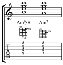 - ^ a b Latarski, Don (1999). Ultimate Guitar Chords: First Chords, p.5. ISBN 978-0-7692-8522-1.