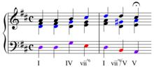 - Roman numeral analysis (e.g., I to indicate the tonic chord and V to indicate the dominant chord)