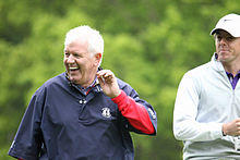 He was introduced to golf at an exceptionally young age by his father, who coached him. Gerry McIlroy is a fine golfer himself, who once played at a scratch handicap level.[8] He asked his father virtually every day to take him to Holywood Golf Club. Family lore relates that he received a new golf club as a present, being shown the correct grip by his father, then taking the club to bed with him that night, with his hands holding the club properly. McIlroy joined Holywood Golf Club and became the youngest member at the club at age seven. A video on golf technique produced by champion Nick Faldo was his early favourite.[9]