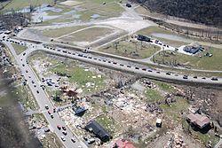 On March 2, 2012, Salyersville was hit by a tornado which caused extensive damage to many businesses and many homes.There were no deaths reported in the Salyersville March 2 Tornado. The Tornado was reported an EF3; There were however deaths that occurred during the Tornado that took place in West Liberty Ky. Though having their homes and businesses destroyed by the March 2nd Tornado, the people of Salyersville came together to rebuild their town. This tornado was a separate storm that formed in Wolfe County, KY, and is not the tornado that previously hit West Liberty and Wellington. Kentucky Gov. Steve Beshear visited both cities on March 3 and toured the eastern part of the state after the tornado outbreak.