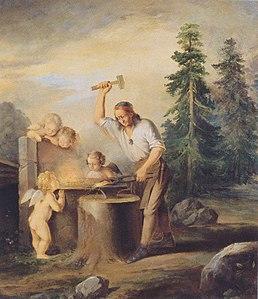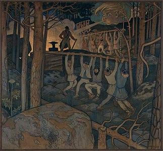Ilmarinen works for several days at a mighty forge until finally the Sampo is created: