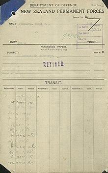 | Service/ | New Zealand Military Forces |