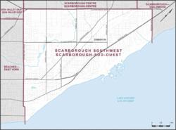 This article is about the federal electoral district now called Scarborough Southwest. For the former provincial electoral district, see Scarborough West (provincial electoral district). For the part of Scarborough, ME, USA, see West Scarborough. For the current provincial electoral district, see Scarborough Southwest (provincial electoral district).