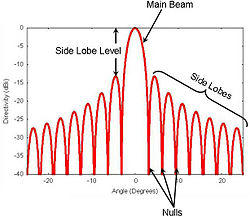 In antenna engineering, side lobes or sidelobes are the lobes (local maxima) of the far field radiation pattern of an antenna or other radiation source, that are not the main lobe.