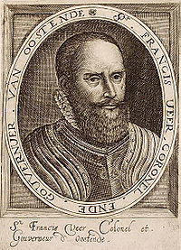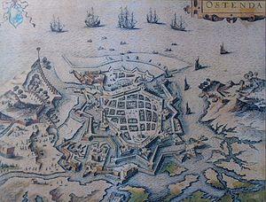 In 1600 the Dutch and English Army under the command of Maurice of Nassau and Francis Vere respectively used Ostend as a base to invade Flanders, in an attempt to conquer the city of Dunkirk after their victory in the Battle of Nieuwpoort.[32] This never happened however as disputes in the Dutch command meant that taking Spanish-occupied cities in the rest of the Netherlands took over priority as the opportunity arose.[33] Maurice concurred and had his forces evacuated by sea leaving Ostend to be preoccupied by the Spanish.[12]