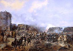 On 5 October (old style date, 17 October new style)[a] the artillery battle began.[18] The Russian artillery first destroyed a French magazine, silencing their guns. British fire then set off the magazine in the Malakoff redoubt, killing Admiral Kornilov, silencing most of the Russian guns there, and leaving a gap in the city's defences. However, the British and French withheld their planned infantry attack, and a possible opportunity for an early end to the siege was missed.