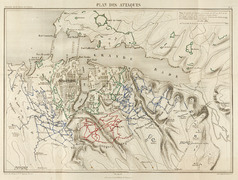 Map of the French (blue) and British (red) lines during the siege. The defenders' positions are in green.