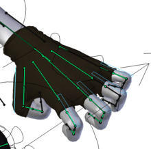 Skeletal animation or rigging is a technique in computer animation in which a character (or other articulated object) is represented in two parts: a surface representation used to draw the character (called the mesh or skin) and a hierarchical set of interconnected parts (called bones, and collectively forming the skeleton or rig), a virtual armature used to animate (pose and keyframe) the mesh.[1] While this technique is often used to animate humans and other organic figures, it only serves to make the animation process more intuitive, and the same technique can be used to control the deformation of any object—such as a door, a spoon, a building, or a galaxy. When the animated object is more general than, for example, a humanoid character, the set of "bones" may not be hierarchical or interconnected, but simply represent a higher-level description of the motion of the part of mesh it is influencing.