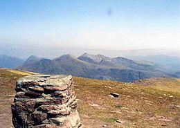 Slioch (Scottish Gaelic: Sleaghach) is a mountain in the Scottish Highlands situated in Wester Ross, eight kilometres north of the village of Kinlochewe. Slioch reaches a height of 981 metres (3218 feet) and towers above the south east end of Loch Maree to give one of the best known and most photographed sights (from the A832 road) in the Highlands. VisitScotland, the Scottish national tourist agency, has used video footage of Slioch in its television advertisements.