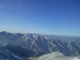 The Sobaek Mountains are a mountain range cutting across the southern Korean peninsula. They split off from the Taebaek Mountains and trend southwest across the center of the peninsula. They are traditionally considered to reach their southwestern limit at Jirisan, which is also the highest peak of the range. Other famous mountains in the range include Songni Mountain, Joryeong Mountain, Gaya Mountain, Worak Mountain, and Sobaek Mountain itself. The peaks of the Sobaek Mountains are generally well over 1000 m above sea level.[1][2]