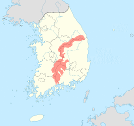 The Sobaek Mountains form the southern half of the Baekdudaegan, the symbolic "spine" of Korea.[3] They mark the traditional border between the Honam and Yeongnam regions.[1]