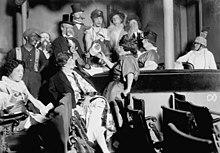During the World War I years, with Charles Dana Gibson as the acting president,[6] Society members worked through the Committee on Public Information's Division of Pictorial Publicity, creating many original poster designs, including James M. Flagg's US Army iconic recruiting poster of Uncle Sam,[3] as well as advertising of the massive War Bond effort.[2] Photo journalism was impractical during these years[7] and eight Society members, commissioned Captains in the Engineers, were sent to France to sketch the war.[6] After the war, the Society operated the School for Disabled Soldiers.[8]
