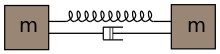 In this approach, the body is modeled as a set of point masses (nodes) connected by ideal weightless elastic springs obeying some variant of Hooke's law. The nodes may either derive from the edges of a two-dimensional polygonal mesh representation of the surface of the object, or from a three-dimensional network of nodes and edges modeling the internal structure of the object (or even a one-dimensional system of links, if for example a rope or hair strand is being simulated). Additional springs between nodes can be added, or the force law of the springs modified, to achieve desired effects. Applying Newton's second law to the point masses including the forces applied by the springs and any external forces (due to contact, gravity, air resistance, wind, and so on) gives a system of differential equations for the motion of the nodes, which is solved by standard numerical schemes for solving ODEs.[9] Rendering of a three-dimensional mass-spring lattice is often done using free-form deformation,[10] in which the rendered mesh is embedded in the lattice and distorted to conform to the shape of the lattice as it evolves. Assuming all point masses equal to zero one can obtain the Stretched grid method aimed at several engineering problems solution relative to the elastic grid behavior. These are sometimes known as mass-spring-damper models. In pressurized soft bodies[11] spring-mass model is combined with a pressure force based on the ideal gas law.