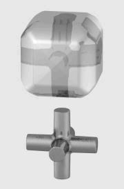 Because CAD programs running on computers "understand" the true geometry comprising complex shapes, many attributes of/for a 3‑D solid, such as its center of gravity, volume, and mass, can be quickly calculated. For instance, the cube with rounded edges shown at the top of this article measures 8.4 mm from flat to flat. Despite its many radii and the shallow pyramid on each of its six faces, its properties are readily calculated for the designer, as shown in the screenshot at right.
