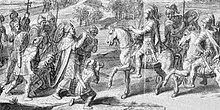 Sophytes is described in classical sources as a ruler in the Punjab region between the Hydraotes and the Hyphasis in the area of the Salt Range, who submitted to Alexander and was, thereby, permitted to retain his realms, probably as a vassal of Porus.[1] He made a demonstration of four Indian dogs fighting a lion to Alexander.[1][7] Sophytes is described as ruling along the Indus during the campaigns of Alexander the Great, in the Bibliotheca of Diodorus Siculus. Curtius also records an interview between the tall and handsome Sophytes and Alexander.
