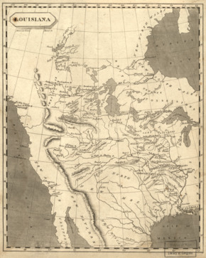 The United States insisted that its purchase also included most of West Florida and all of Texas.[147] Thomas Jefferson claimed that Louisiana stretched west to the Rocky Mountains and included the entire watershed of the Mississippi and Missouri Rivers and their tributaries, and that the southern border was the Rio Grande. Spain maintained that Louisiana extended only as far as Natchitoches, and that it did not include the Illinois Territory.[149]