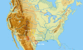The 500 Hispanic settlers who had lived near Los Adaes had to resettle in San Antonio in 1773.[93] In the six years between the inspection and the removal of the settlers, the immigrant population of East Texas had increased from 200 Europeans to 500, a mixture of Spanish, French, Indians, and a few blacks. The settlers were given only five days to prepare to relocate to San Antonio. Many of them perished during the three-month trek and others died soon after arriving.[94]