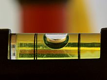 A spirit level, bubble level, or simply a level, is an instrument designed to indicate whether a surface is horizontal (level) or vertical (plumb). Different types of spirit levels may be used by carpenters, stonemasons, bricklayers, other building trades workers, surveyors, millwrights and other metalworkers, and in some photographic or videographic work.