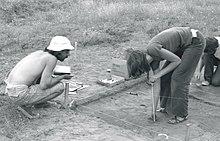 Tilting level, dumpy level or automatic level[2] are terms used to refer to types of leveling instruments as used in surveying to measure height differences over larger distances. It has a spirit level mounted on a telescope (perhaps 30 power) with cross-hairs, itself mounted on a tripod. The observer reads height values off two graduated vertical rods, one 'behind' and one 'in front', to obtain the height difference between the ground points on which the rods are resting. Starting from a point with a known elevation and going cross country (successive points being perhaps 100 meters (328 ft) apart) height differences can be measured cumulatively over long distances and elevations can be calculated. Precise levelling is supposed to give the difference in elevation between two points one kilometer (0.62 miles) apart correct to within a few millimeters.