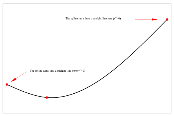 For the elastic rulers being the model for the spline interpolation one has that to the left of the left-most "knot" and to the right of the right-most "knot" the ruler can move freely and will therefore take the form of a straight line with q′′ = 0. As q′′ should be a continuous function of x one gets that for "Natural Splines" one in addition to the n − 1 linear equations (15) should have that