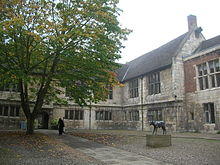 The abbey occupied an extensive precinct site immediately outside the city walls, between Bootham and the River Ouse.[1][6] The original boundary included a ditch and a narrow strip of ground, but the walled circuit was constructed above this in the 1260s in the Abbacy of Simon de Warwick;[6] the walls were nearly three-quarters of a mile long. In 1318 the abbot received royal permission to raise the height of the wall and crenelate it; a stretch of this wall still runs along Bootham and Marygate to the River Ouse.[2]