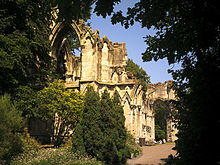 Once one of the most prosperous abbeys in the North of England,[2] its remains lie in what are now the York Museum Gardens, on a steeply-sloping site to the west of York Minster.