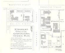 The laying of the foundation stone took place on 15 August 1855. Prior to this there existed a grammar school, founded by Bishop Robert Gray in 1849 on the site currently occupied by the Good Shepherd School, under the management of Mr. M.C. Bendelack, who was soon succeeded by the Rev. F. Bankes. Bankes was appointed principal of the new college, retaining also the title of Head-Master of St. Andrew's College Grammar School, as his school and all funds belonging to it were merged into the new institution. The Society for Promoting Christian Knowledge gave £1000 towards the building to which they added £500 in 1857, and a like sum in 1860. A supplementary sum was subscribed by friends of the Bishop.