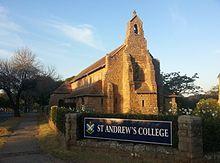 St. Andrew's College is an Anglican high school for boys located in Makhanda, Eastern Cape province of South Africa. It was founded in 1855 by the Right Reverend John Armstrong, the first Bishop of Grahamstown. It is a semi boarding school, with a number of day boys. St. Andrew's College caters to 480 pupils from around the globe. The school is also a member of the G20 Schools group and closely associated with its brother school, St. Andrew's Preparatory School, and its sister school the Diocesan School for Girls.
