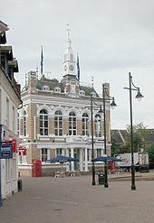 The administrative offices of Spelthorne Borough Council are by one of the town's more linear parks. In the early 2000s, a public landscape area was constructed by the riverside conservation area with seating and sculptures to enhance the waterfront as a place to walk. Staines Town Hall is a stuccoed Victorian blend of Italian and Flemish styles in a small market square, converted into an Art Centre in the 1990s, and later turned into a pub (now closed). Elaborate Georgian shophouses line Clarence Street (named after William, Duke of Clarence, who became King William IV).[28] Church Street and Lammas Lane house the oldest properties clustered around the parish church of St Mary.[29] Most neighbourhoods have green spaces such as (Staines Moor, Shortwood Common, Knowle Green, Leacroft, the Lammas and the sports fields and farms on the borders of Laleham. The last two are riverside parks with picnic areas and playgrounds. Many of the parks belonged to former grand houses: see Laleham for Lord Lucan's 'Laleham House' which became a Roman Catholic abbey for a century. Since the late 20th century, listed luxury apartments in the post town have been created there and at Duncroft Manor.