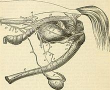 The internal genitalia comprise the accessory sex glands, which include the vesicular glands, the prostate gland and the bulbourethral glands.[8] These contribute fluid to the semen at ejaculation, but are not strictly necessary for fertility.[2][9]