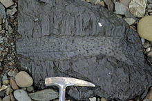 Stigmaria is a form taxon for common fossils found in Carboniferous rocks.[1] They represent the underground rooting structures of coal forest lycopsid trees such as Sigillaria and Lepidodendron. These swamp forest trees grew to 50 meters and were anchored by an extensive network of branching underground structures with "rootlets" attached to them. Analysis of the morphology and anatomy of these stigmarian systems suggests they were shoot-like and so they are called rhizomes or rhizophores. The stigmarian rhizomes are typically covered with a spiral pattern of circular scars where "rootlets" were attached. Since the stigmarian systems are shoot-like, these "rootlets" may be modified leaves, adapted to serve the function of roots. However, some paleontologists argue that the "rootlets" were true roots, with a complex branching structure and root hairs, comparable to the roots of the closest living relative of Lepidodendron, the quillworts (genus Isoetes).[2]