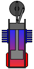 - The reduced pressure now arrests the outward motion of the piston and it begins to accelerate towards the hot end again and by its own inertia, compresses the now cold gas, which is mainly in the cold space.