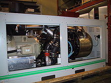 A Stirling engine is a heat engine that is operated by the cyclic compression and expansion of air or other gas (the working fluid) at different temperatures, resulting in a net conversion of heat energy to mechanical work.[1][2] More specifically, the Stirling engine is a closed-cycle regenerative heat engine with a permanent gaseous working fluid. Closed-cycle, in this context, means a thermodynamic system in which the working fluid is permanently contained within the system, and regenerative describes the use of a specific type of internal heat exchanger and thermal store, known as the regenerator. Strictly speaking, the inclusion of the regenerator is what differentiates a Stirling engine from other closed cycle hot air engines.[3]