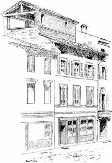 Stradivari purchased a house now known as No. 1 Piazza Roma (formerly No. 2 Piazza San Domenico) around 1680 for the sum of 7000 lire, 2000 of which he paid at the time of the purchase. The totality of the house was paid for by 1684.[25] The residence was just doors away from those of several other violin-making families of Cremona, including the Amatis and Guarneris.[27] Stradivari probably worked in the loft and attic, and he stayed in this house for the rest of his life.[28]