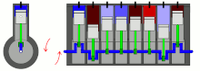 The straight-eight engine or inline-eight engine is an eight-cylinder internal combustion engine with all eight cylinders mounted in a straight line along the crankcase. The type has been produced in side-valve, IOE, overhead-valve, sleeve-valve, and overhead-cam configurations.