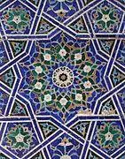 Girih is an Islamic decorative art form used in architecture and handicrafts (book covers, tapestry, small metal objects) from the 8th century onwards. It consists of geometric lines that form an interlaced strapwork. Girih patterns are used in varied media including tilework, brickwork, stucco, wood (for example in minbar pulpits) and mosaic faience work.[10][11]