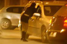 Street prostitution is a form of sex work in which a sex worker solicits customers from a public place, most commonly a street, while waiting at street corners or walking alongside a street, but also other public places such as parks, benches, etc. The street prostitute is often dressed in a provocative manner. The sex act may be performed in the customer's car, in a nearby secluded street location, or at the prostitute's residence or in a rented motel room.[1]
