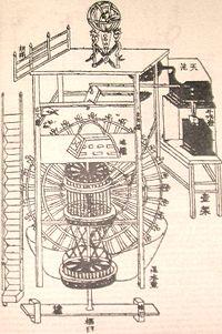 According to your servant's opinion there have been many systems and designs for astronomical instruments during past dynasties all differing from one another in minor respects. But the principle of the use of water-power for the driving mechanism has always been the same. The heavens move without ceasing but so also does water flow (and fall). Thus if the water is made to pour with perfect evenness, then the comparison of the rotary movements (of the heavens and the machine) will show no discrepancy or contradiction; for the unresting follows the unceasing.[54]