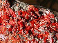 This treatise documented a wide range of pharmaceutical practices, including the use of ephedrine as a drug.[14] It includes valuable information on metallurgy and the steel and iron industries during 11th century China. He created a systematic approach to listing various different minerals and their use in medicinal concoctions, such as all the variously known forms of mica that could be used to cure ills through digestion.[33] He wrote of the subconchoidal fracture of native cinnabar, signs of ore beds, and provided description on crystal form.[34] Similar to the ore channels formed by circulation of ground water written of by the later German scientist Georgius Agricola, Su Song made similar statements concerning copper carbonate, as did the earlier Rihua Bencao of 970 with copper sulphate.[34] Su's book was also the first pharmaceutical treatise written in China to describe the flax, Urtica thunbergiana, and Corchoropsis tomentosa (crenata) plants.[35] According to Edward H. Schafer, Su accurately described the translucent quality of fine realgar, its origin from pods found in rocky river gorges, its matrix being pitted with holes and having a deep red, almost purple color, and that the mineral varied in sizes ranging from the size of a pea to a walnut.[36]