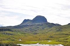 - The Assynt-Coigach NSA has many distinctively shaped mountains, including Quinag, Canisp, Suilven, Cùl Mòr, Stac Pollaidh and Ben More Assynt, that rise steeply from the surrounding "cnoc and lochan" scenery. These can often appear higher than their actual height would indicate due to their steep sides and the contrast with the moorland from which they rise.[5] Assynt lies within Sutherland, whilst Coigach lies within Ross and Cromarty.