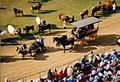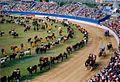 At the RAS Showground at Moore Park, the largest single event of the show was the Grand Parade on Easter Saturday when hundreds of beasts representing the various classes of livestock were paraded in a series of concentric circles. To the public eye, this spectacular sight, which involved creatures ranging from newborn lambs and Shetland ponies to Brahman bulls and Clydesdale stallions, was staged with such skill that it invariably took place without a hitch. However, on one memorable occasion a steer broke loose and plunged into the quarters of the Royal Agricultural Society. The Grand Parade continues to take place, though on a somewhat smaller scale, at the Sydney Showground Stadium.