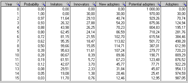 The dynamic simulation results show that the behaviour of the system would be to have growth in adopters that follows a classic s-curve shape.