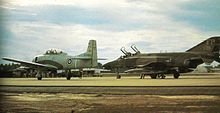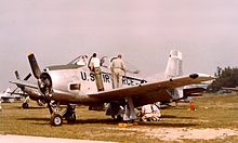 - Attack model of the T-28D used for Close Air Support (CAS) missions by the USAF and allied Air Forces in Southeast Asia, which were nicknamed "Tangos" by their pilots.[16] It was fitted with six underwing hardpoints and the rocket-powered Stanley Yankee ejection seat;[17][18] 72 converted by Fairchild Hiller.